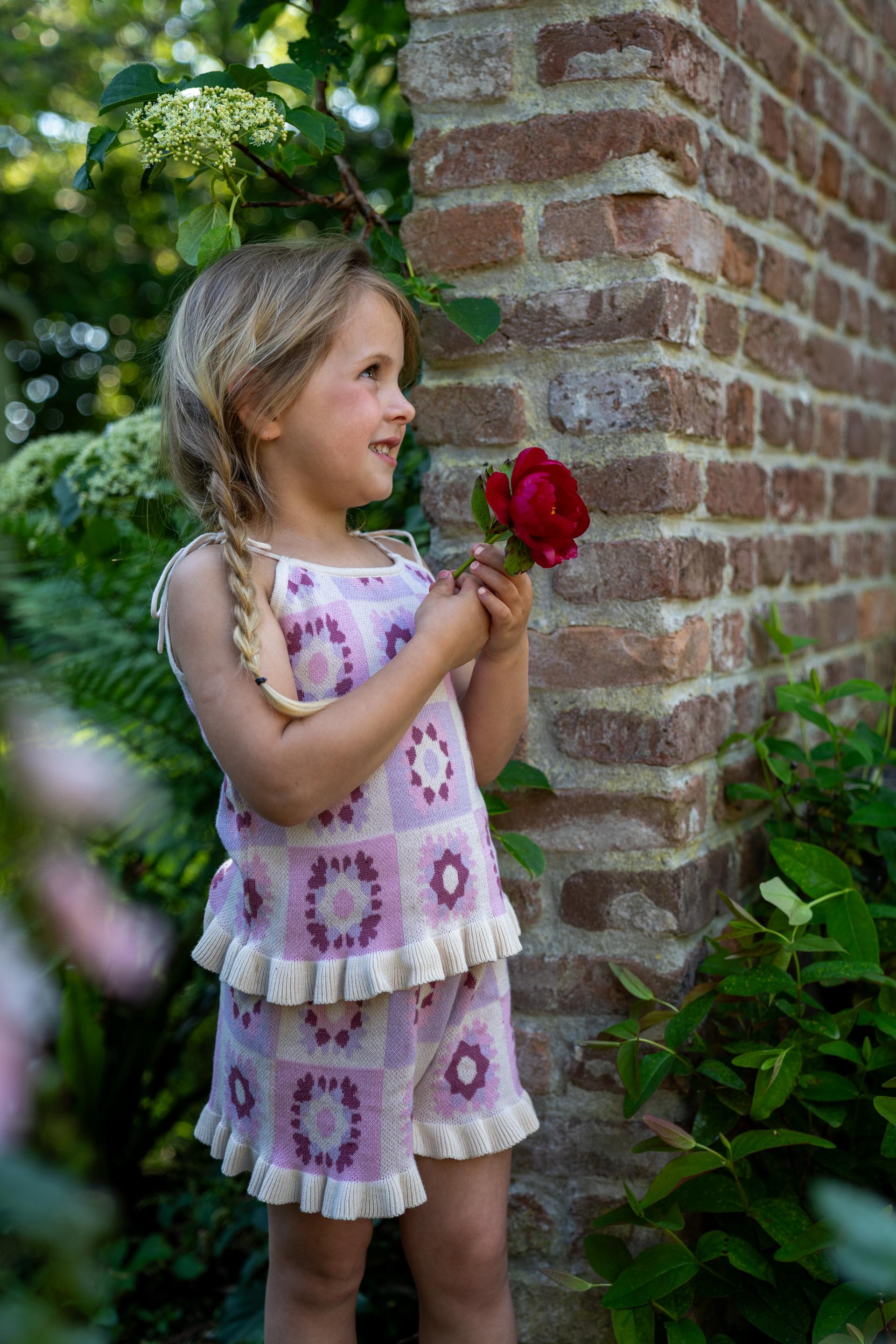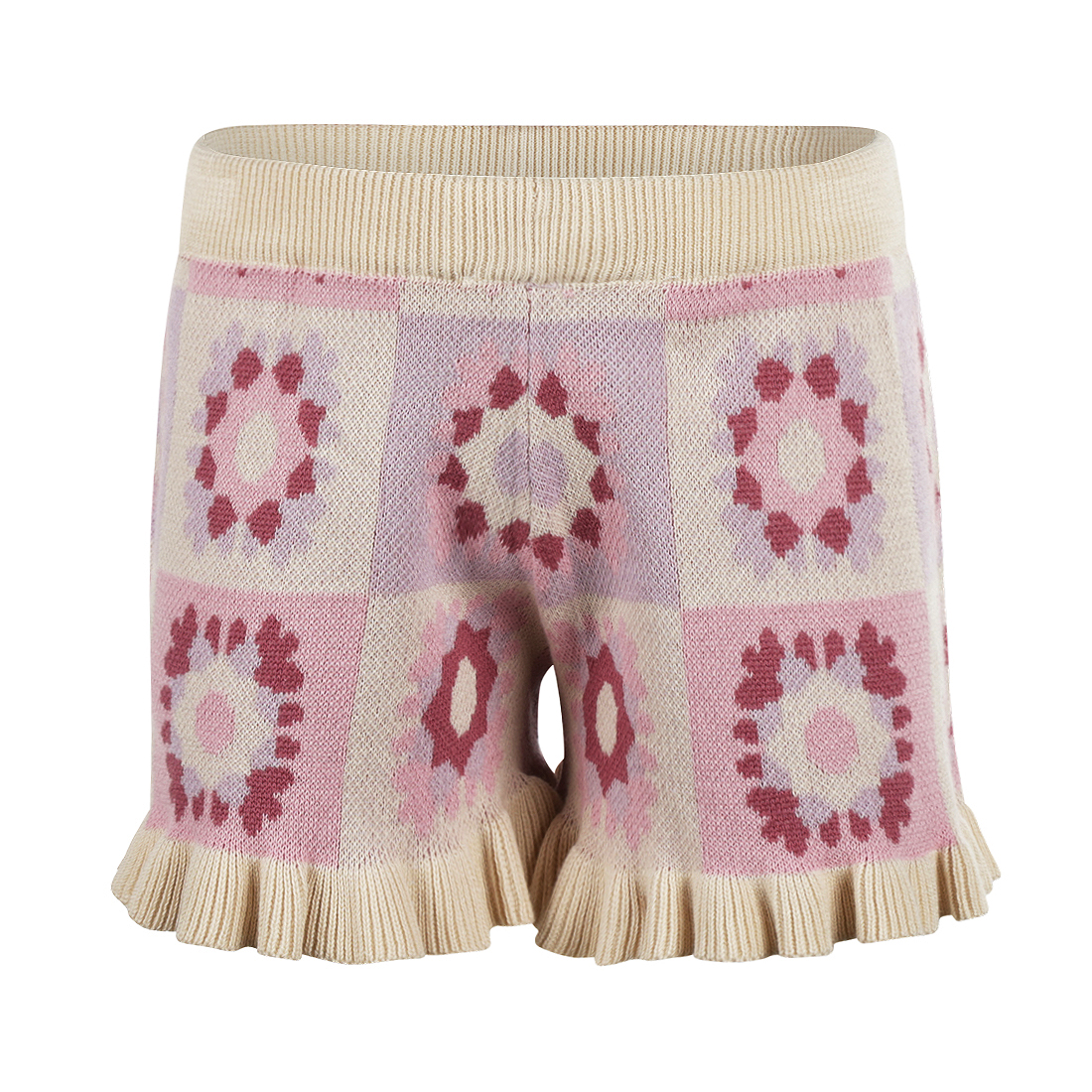 분홍색 라일락 꽃무늬 영감을 넣은 반바지는