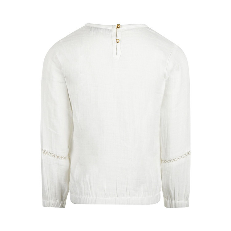 퍼프 소매와 오픈워크 디테일로 스타일리시한 블라우스로